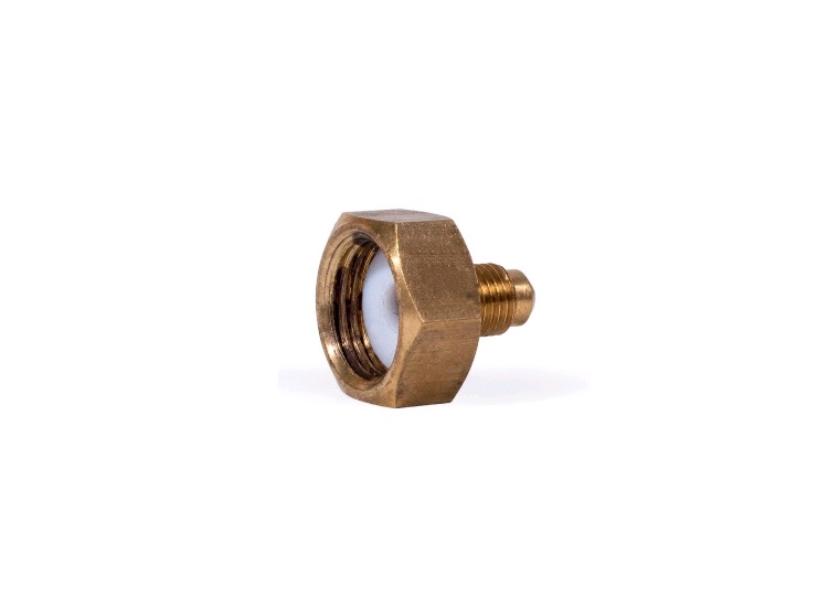 Reducing nut for new refrigerants R32 and R1234yf. 1/4 "SAE external thread allows the connection of a hose to fill the cooling system with a cylinder containing a refrigerant equipped with a threaded connection W 22.8 x 14. The nut is provided with a perfectly matched, durable gasket. Due to various properties and safety requirements in cylinders of R32 and R11234yf